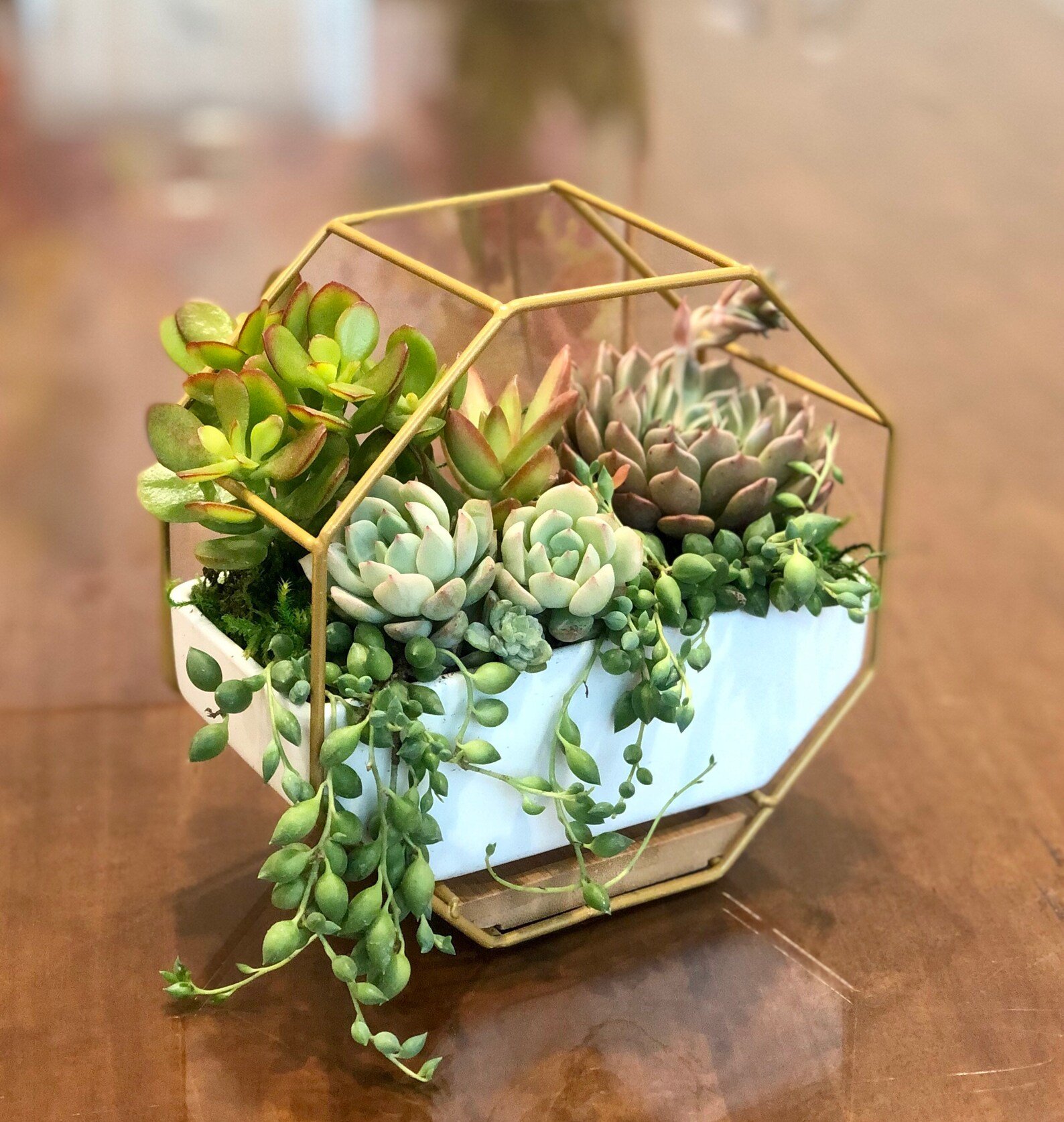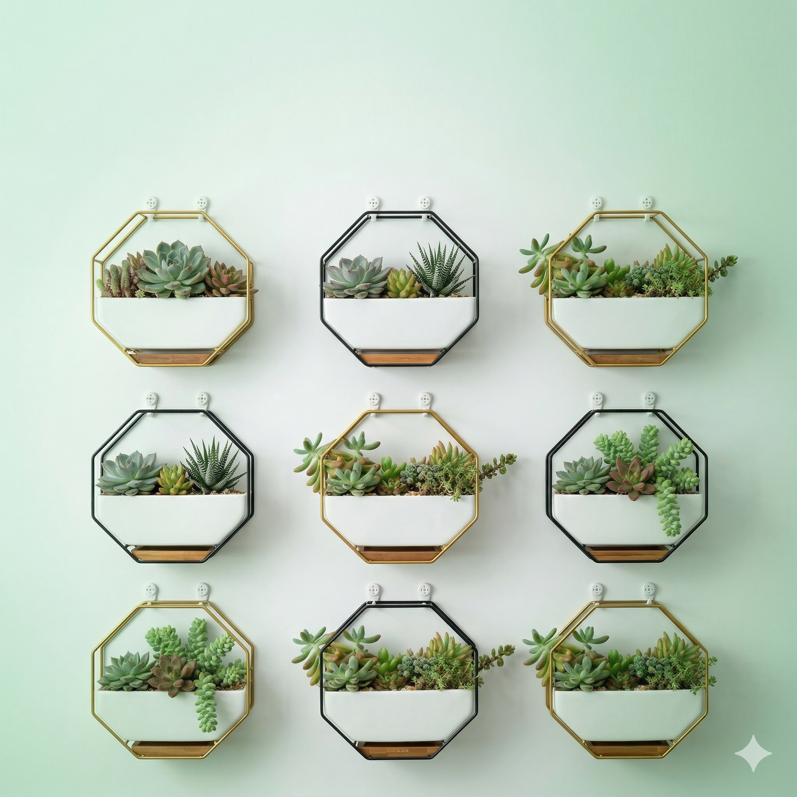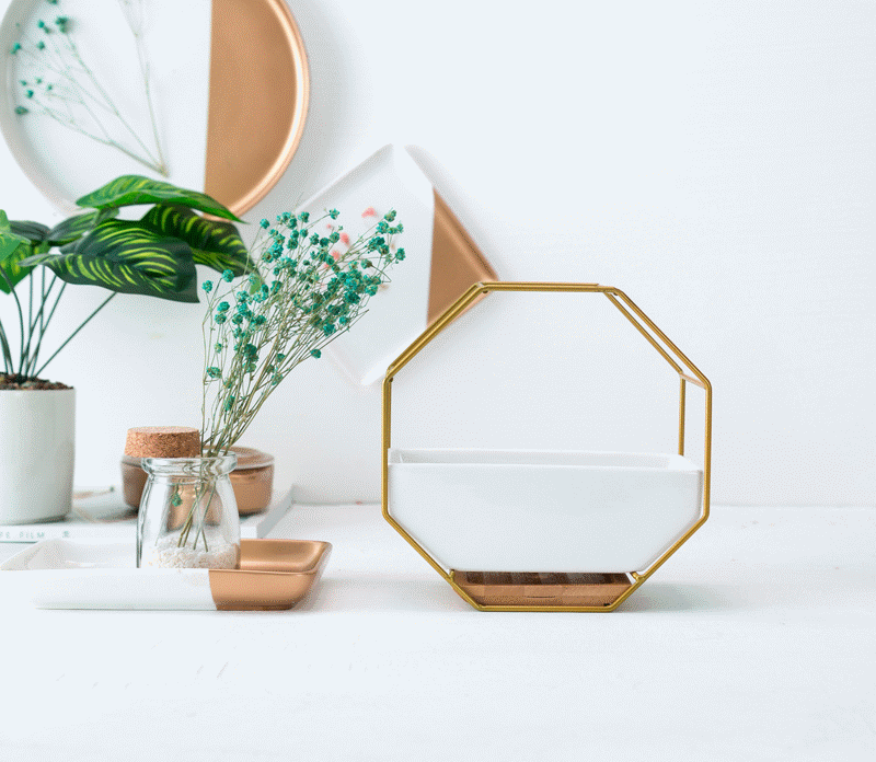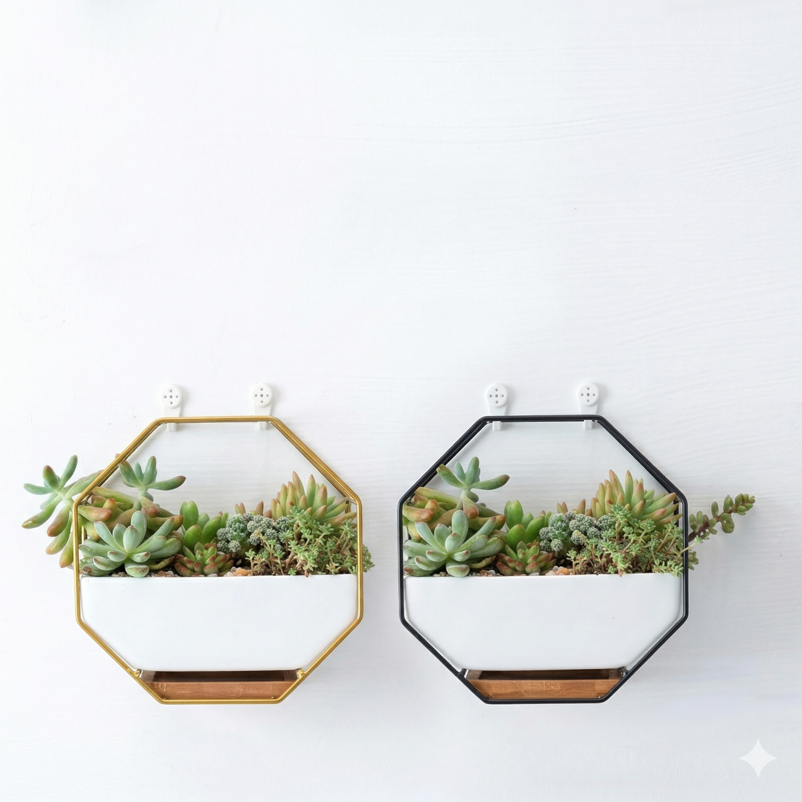 - Modern Geometric Design – Unique hexagon-shaped ceramic pot paired with a chic golden metal frame for a stylish, contemporary look.